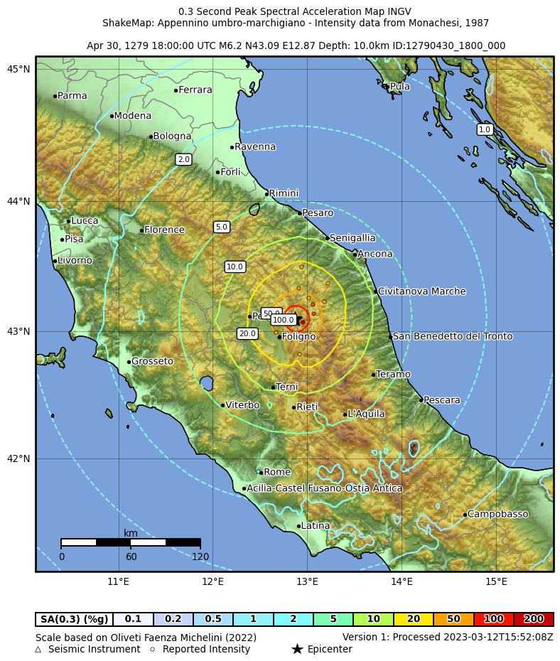 | CPTI15 | 1279-04-30 18 | 43.093 | 12.872 | -- | Mw 6.20 | 9 | Monachesi, 1987 | ||