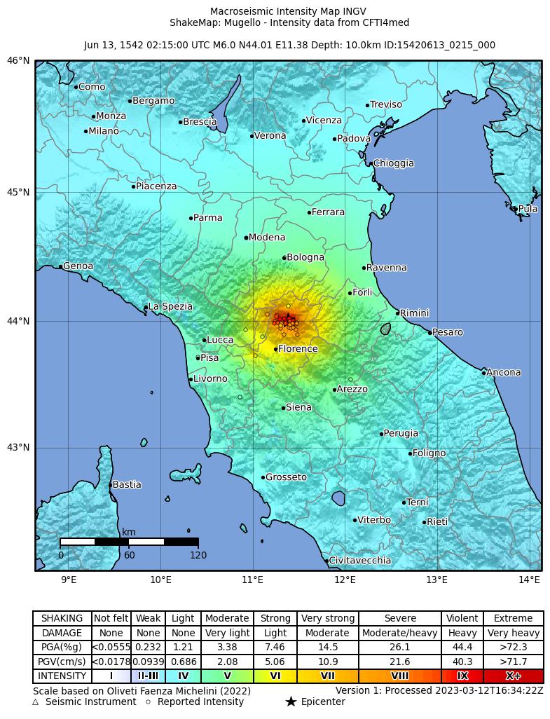 | CPTI04 | 1542-06-13 02:15 | 44.000 | 11.380 | -- | Mw 5.91 | 9 | CFTI2 | ||