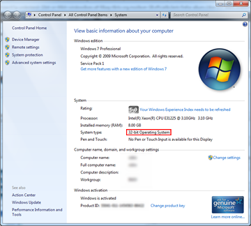 You can determine which version of MS Windows you are running (32bit or 64bit) clicking "System" in the "Control Panel".